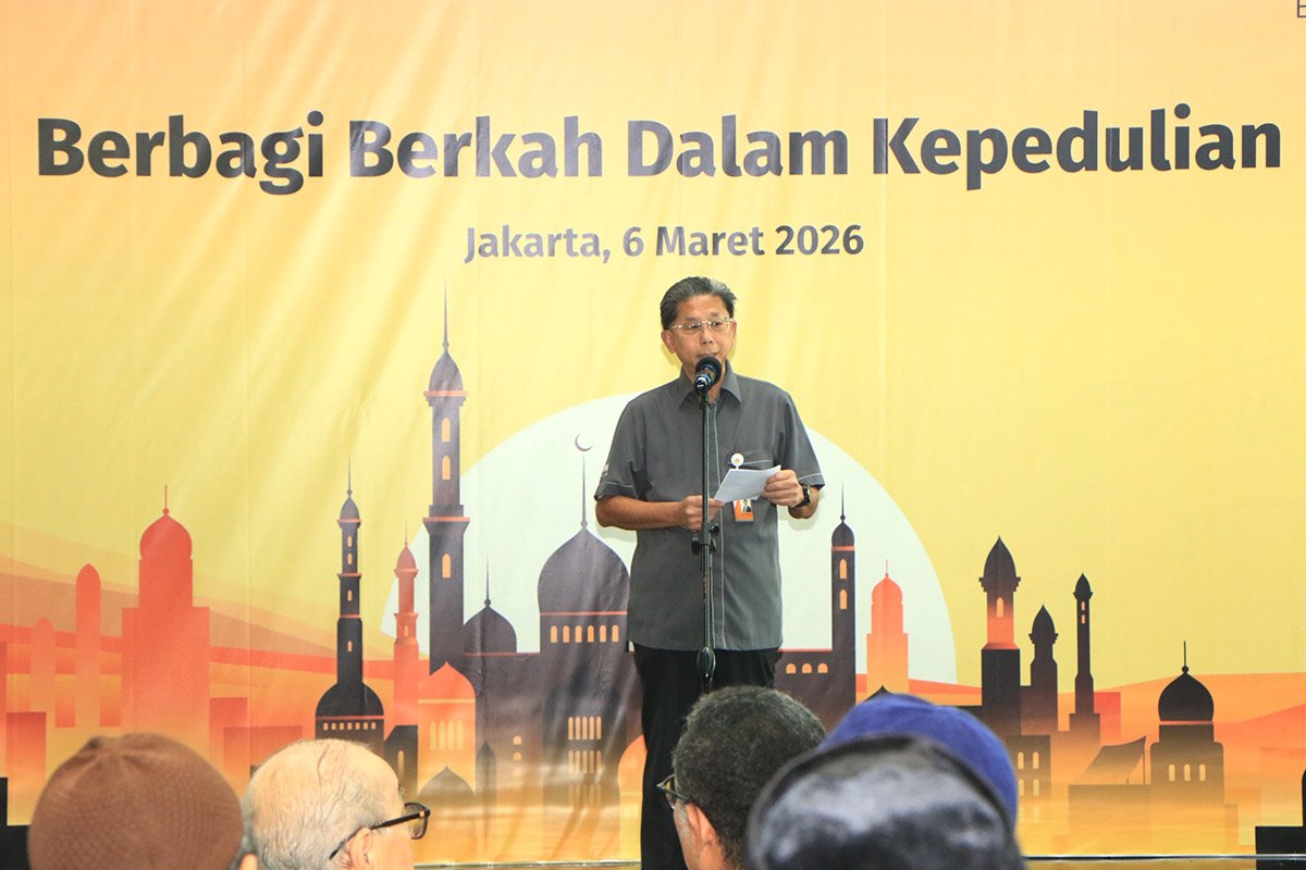 Jakarta, Kabarkansaja.com - Direktur Utama PT Bank MegaTbk Kostaman Thayib (kedua kanan) dan Direktur Retail Banking Bank Mega Heriwan Gazali (kanan) berbincang di sela acara penyerahan simbolis bantuan paket sembako kepada perwakilan pengurus yayasan dan masjid di Menara Bank Mega, Jakarta, Jumat (6/3/2026).